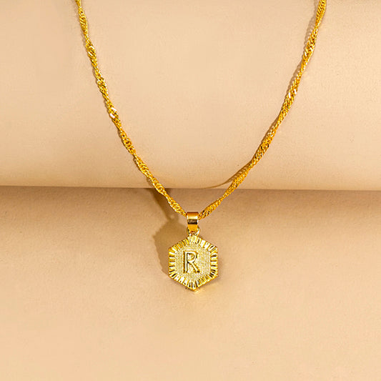 Initial Letter Hexagon Pendant Necklace For Women Jewelry